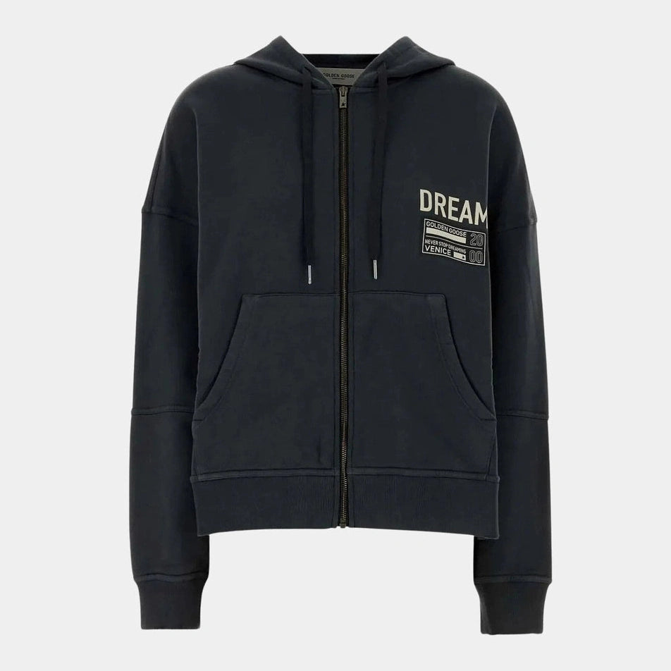 This cotton sweater from Golden Goose features a zip fastening, graphic print, kangaroo pocket, and drop shoulder. Material: 100% Cotton. Made in Italy. Product ID: GUP02334 P002143 60617.