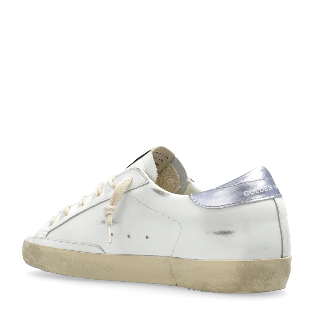 Introduce sophistication and a hint of rebellious charm with the Super-Star Classic With List sneakers, crafted by the esteemed Italian designer, Golden Goose. These low-top sneakers boast an asymmetrical design, featuring a prominent star embellished with glitter on their exterior.