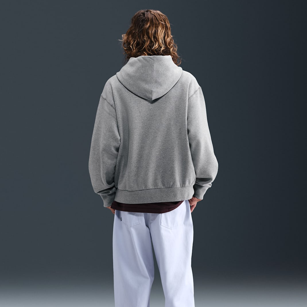 Made with brushed fleece, this boxy hoodie gives you a draped look and lets you move with ease. And in case you need extra storage, there's a hidden pocket inside the kangaroo pocket.
