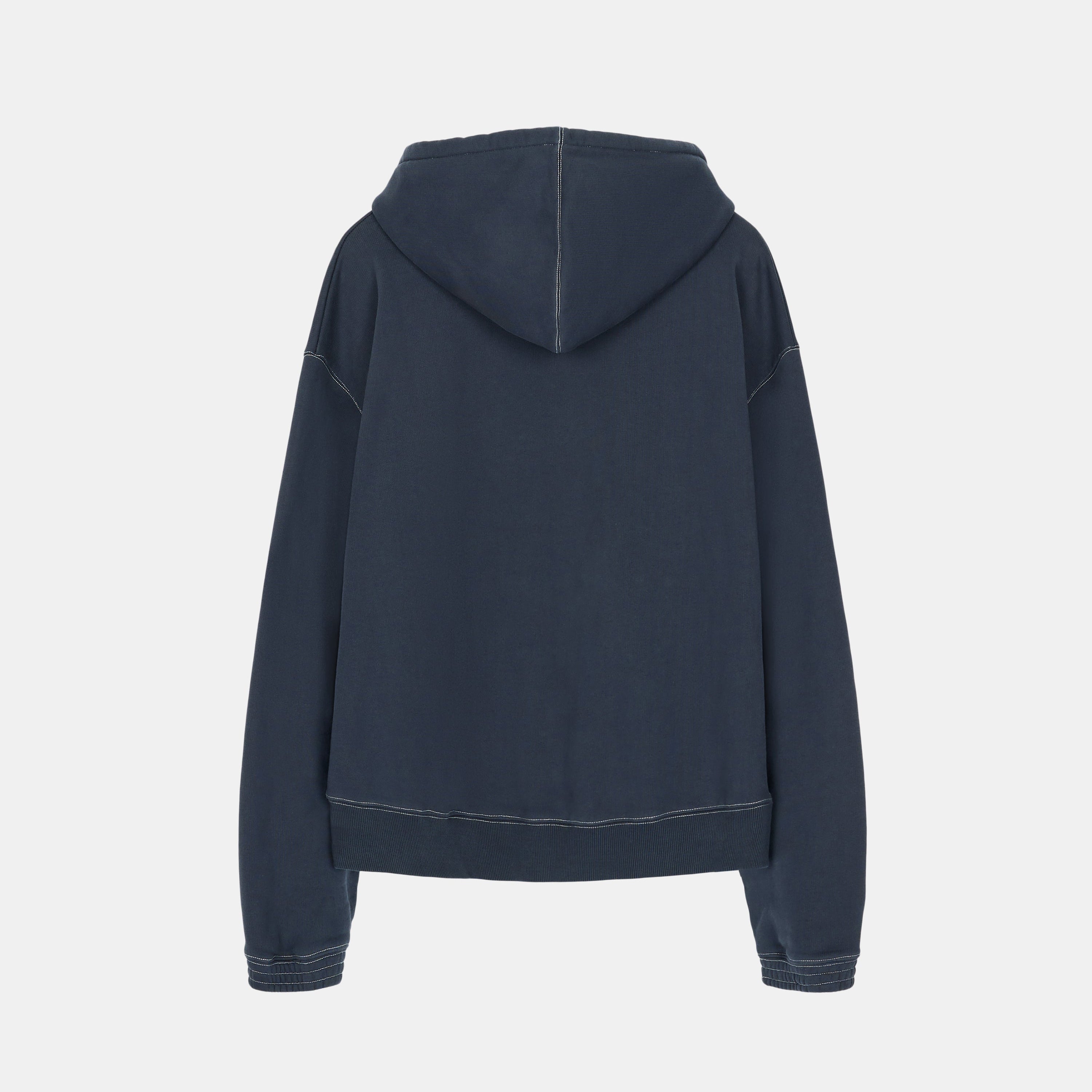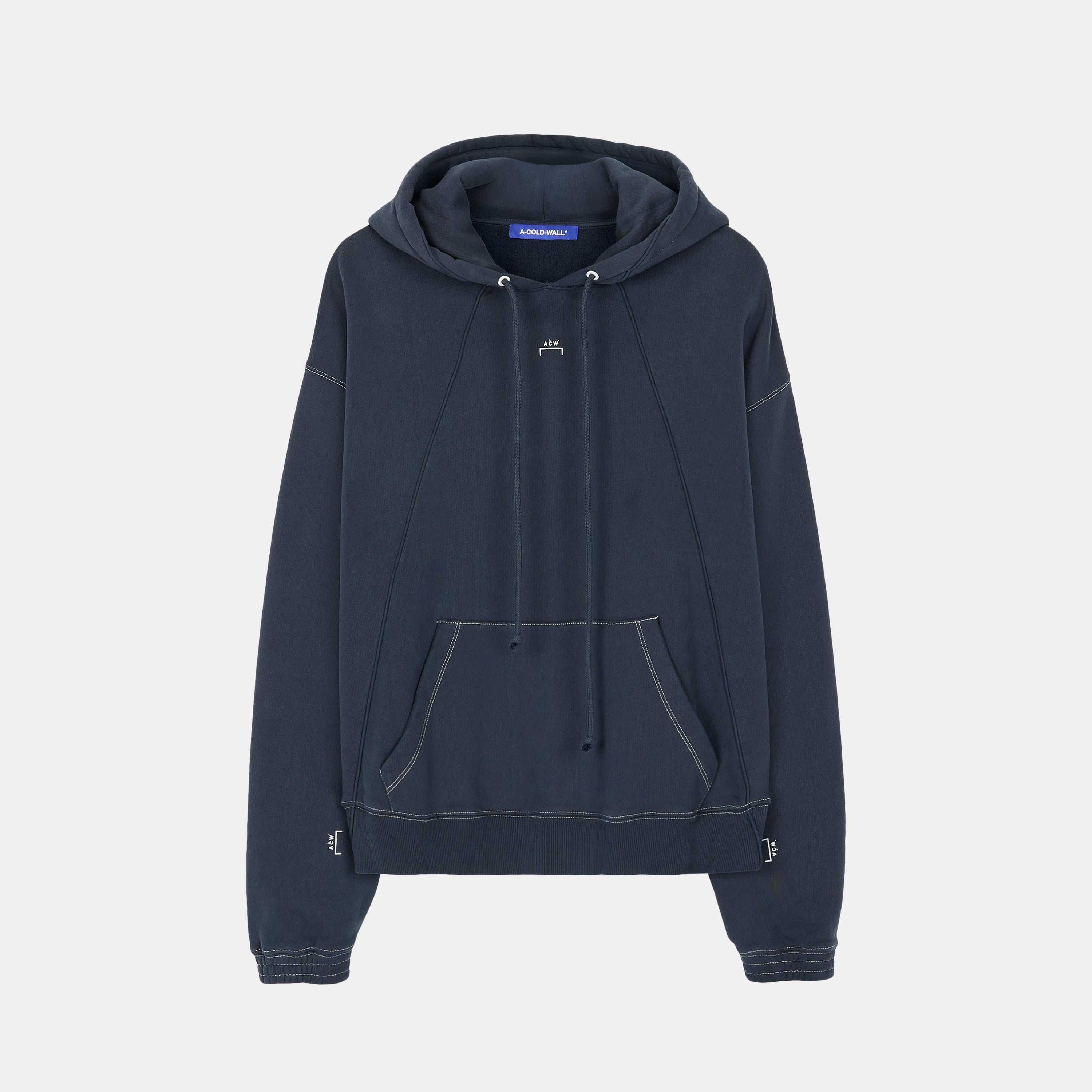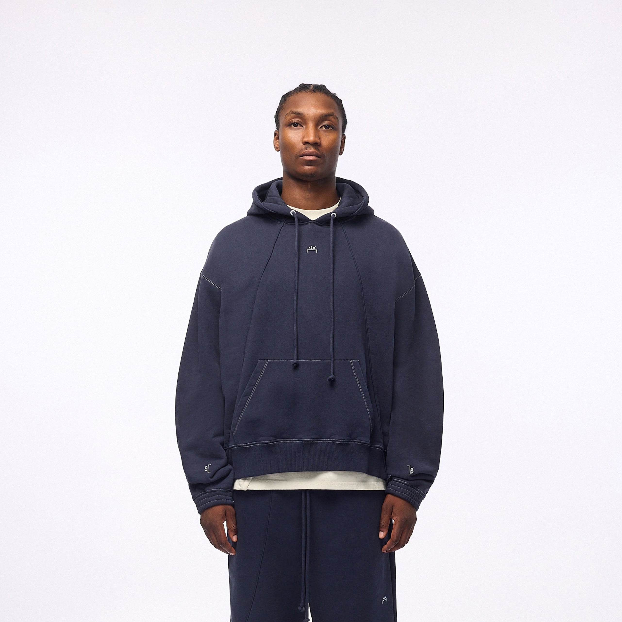 Relaxed-fit cotton hoodie with piped seams bisecting the front. Contrast colour stitching runs on hem, neck and sleeve.