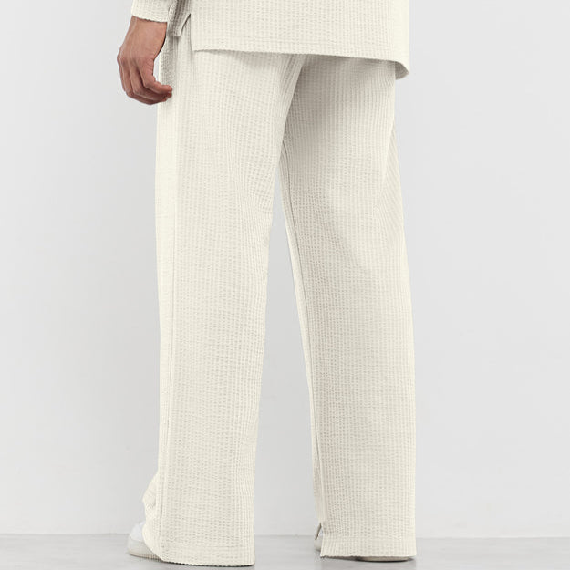 Textured Cotton 30 inch Wide Leg Pants IVORY