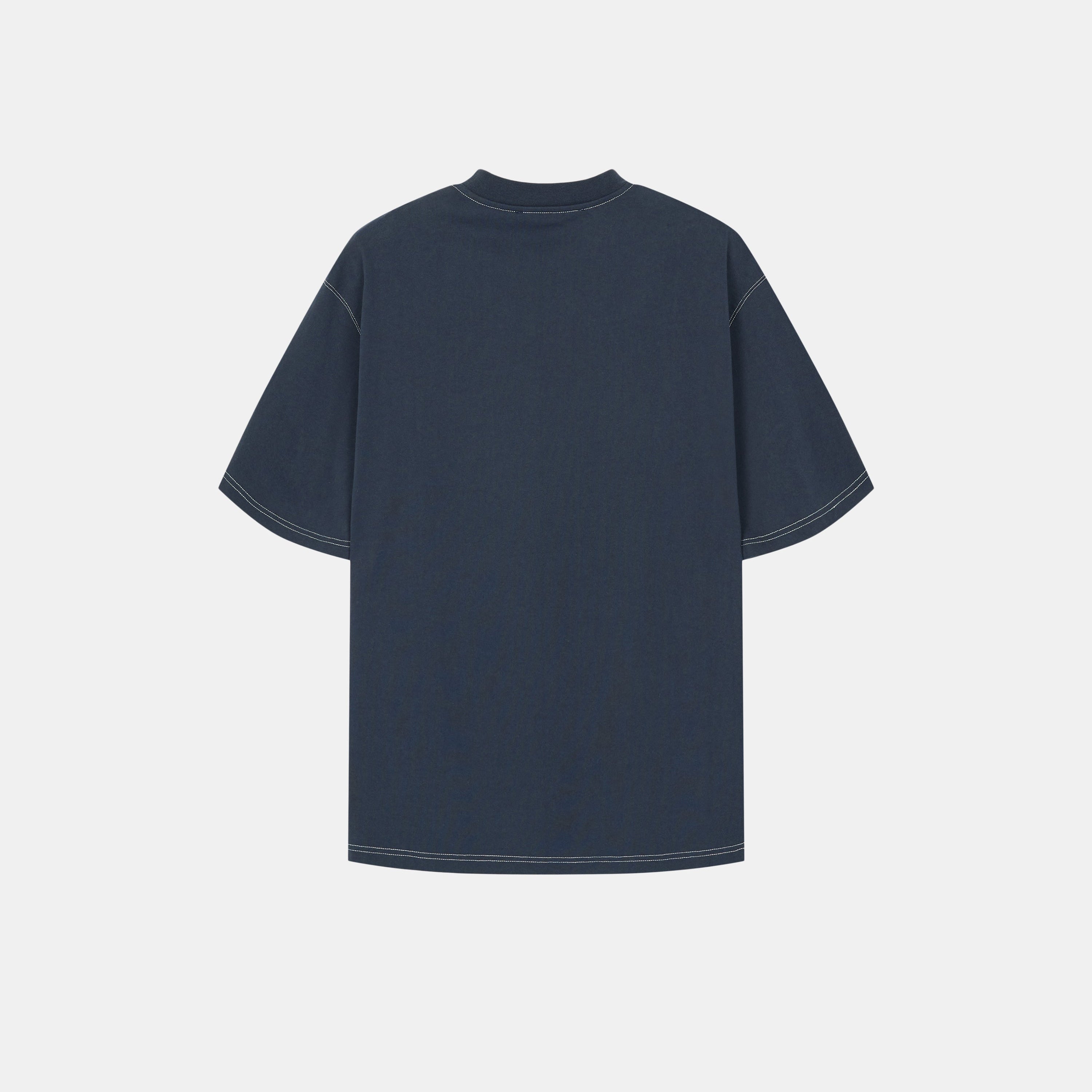 Relaxed-fit cotton T-shirt with piped seams bisecting the front. Contrast colour stitching runs on hem, neck and sleeve.