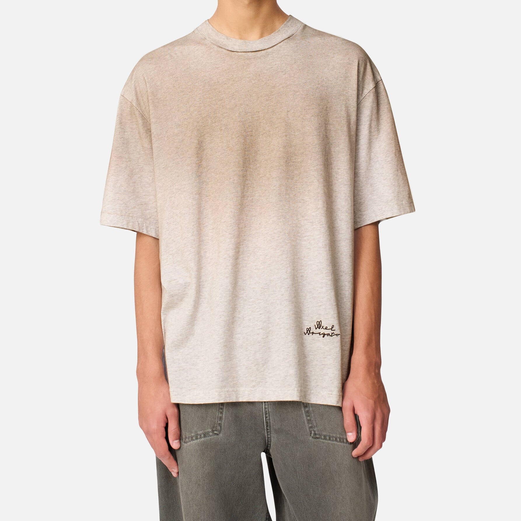 The Saba T-shirt is crafted from a blend of 85% organic cotton and 15% hemp, offering something more lightweight and breathable. This oversized piece features a unique spray technique that creates a distinctive fading effect, ensuring each garment is one-of-a-kind with subtle variations in color. Finished with elegant 'Axel Arigato' script embroidery at the bottom hem, handcrafted in Portugal.