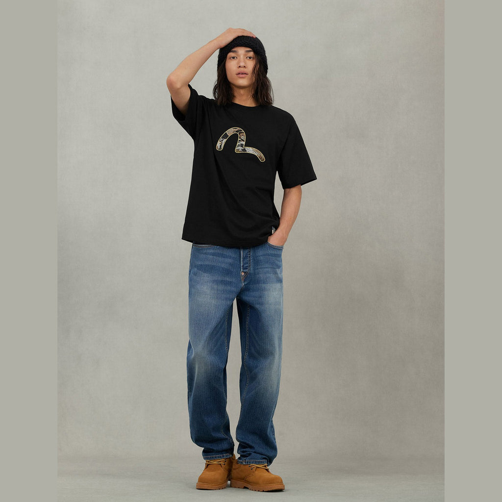 Brocade Seagull Appliqué Regular Fit Short Sleeves T-shirt BLACK