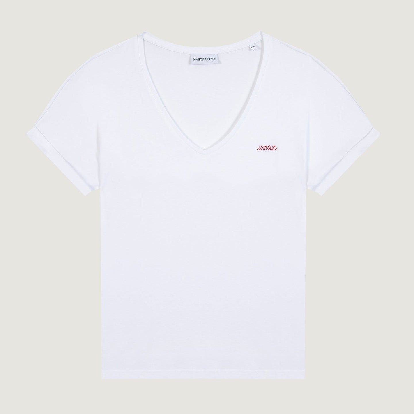 Our Ch‰teau V-neck t-shirt has a loose, short cut and rolled-up sleeve cuffs. Its embroidery evokes the most beautiful of feelings.