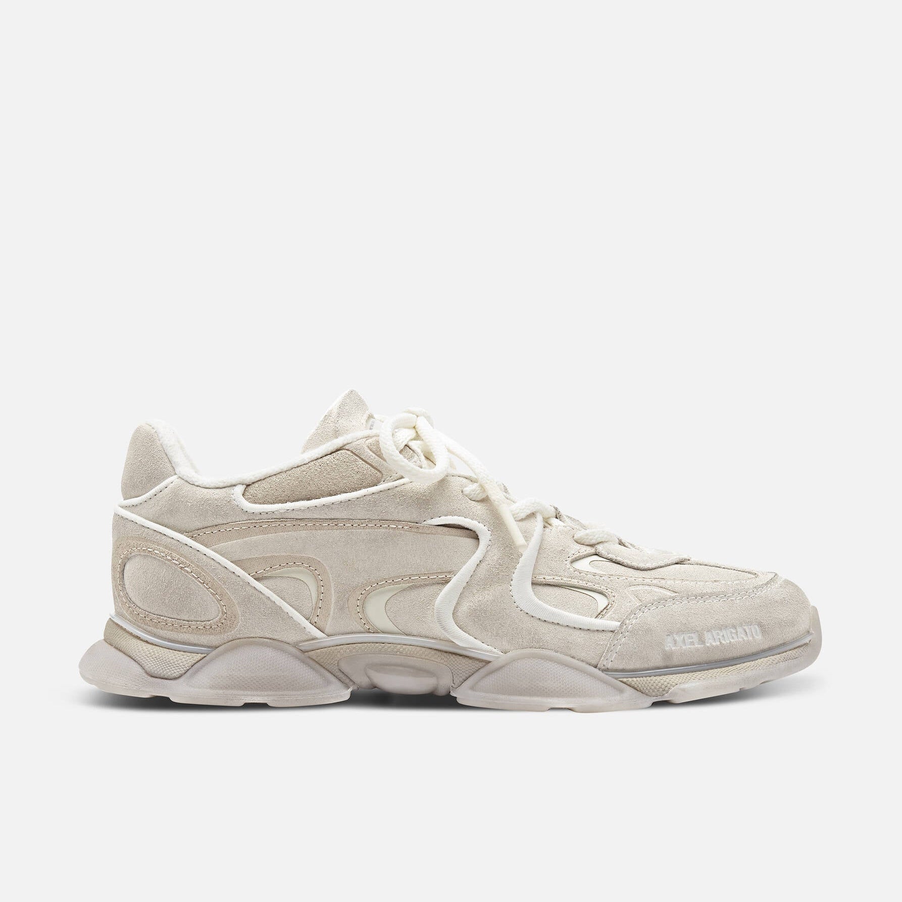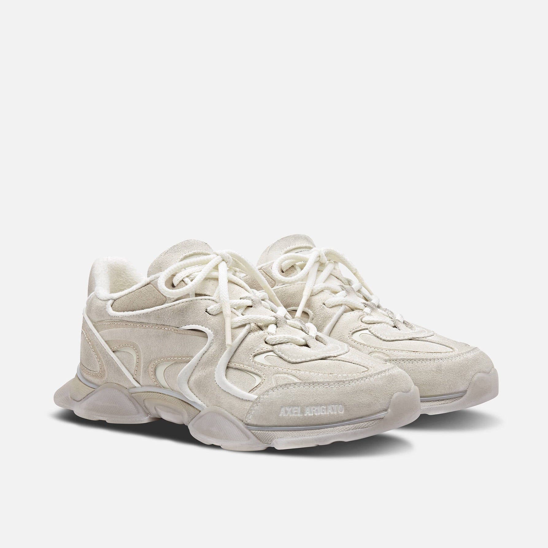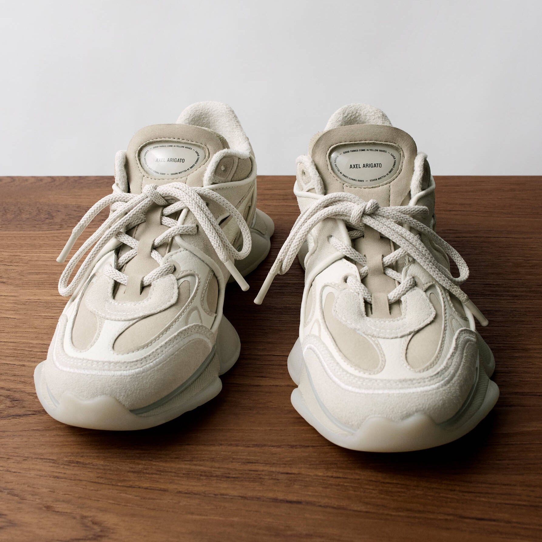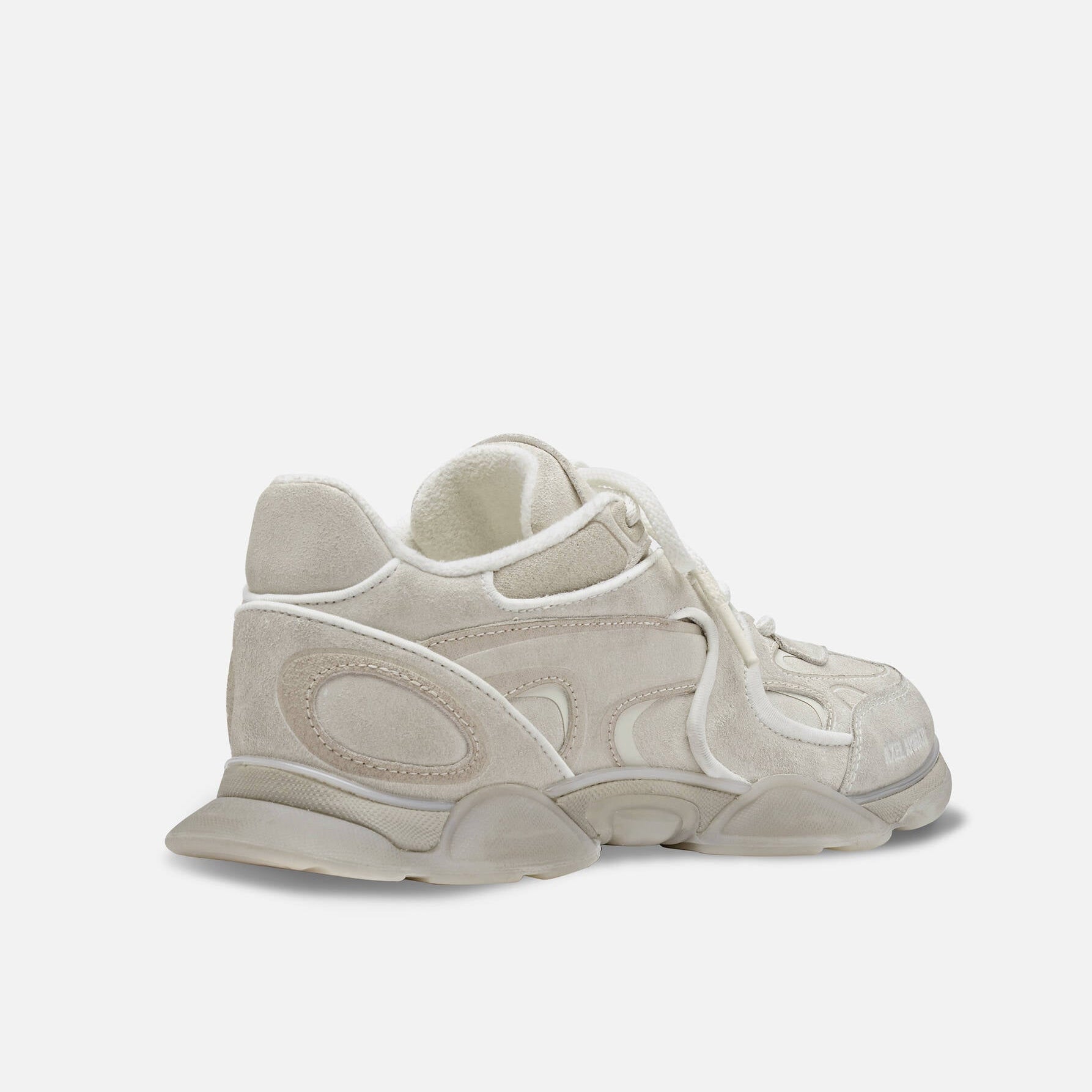 The Eris sneaker embodies our dedication to blending exceptional craft with boundary-pushing experimental design. It’s set on an over-proportioned outsole that extends beyond the low-profile upper’s outline, creating striking visual contrast from every angle. A showcase of technical craftsmanship, this model is hand-constructed from 36 individual pieces. It features an intricately interlocked suede and leather exterior for a signature paneled finish, along with a textured sandpaper trim beneath the sockline. Each pair is fully saturated in a single shade and distressed by hand, meaning no two are alike.