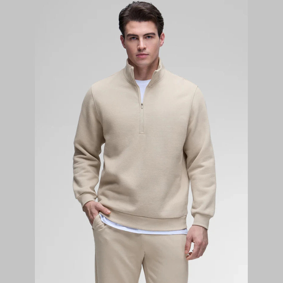 Fleece Lined Half Zip Sweatshirts Mock Neck Mojave Tan