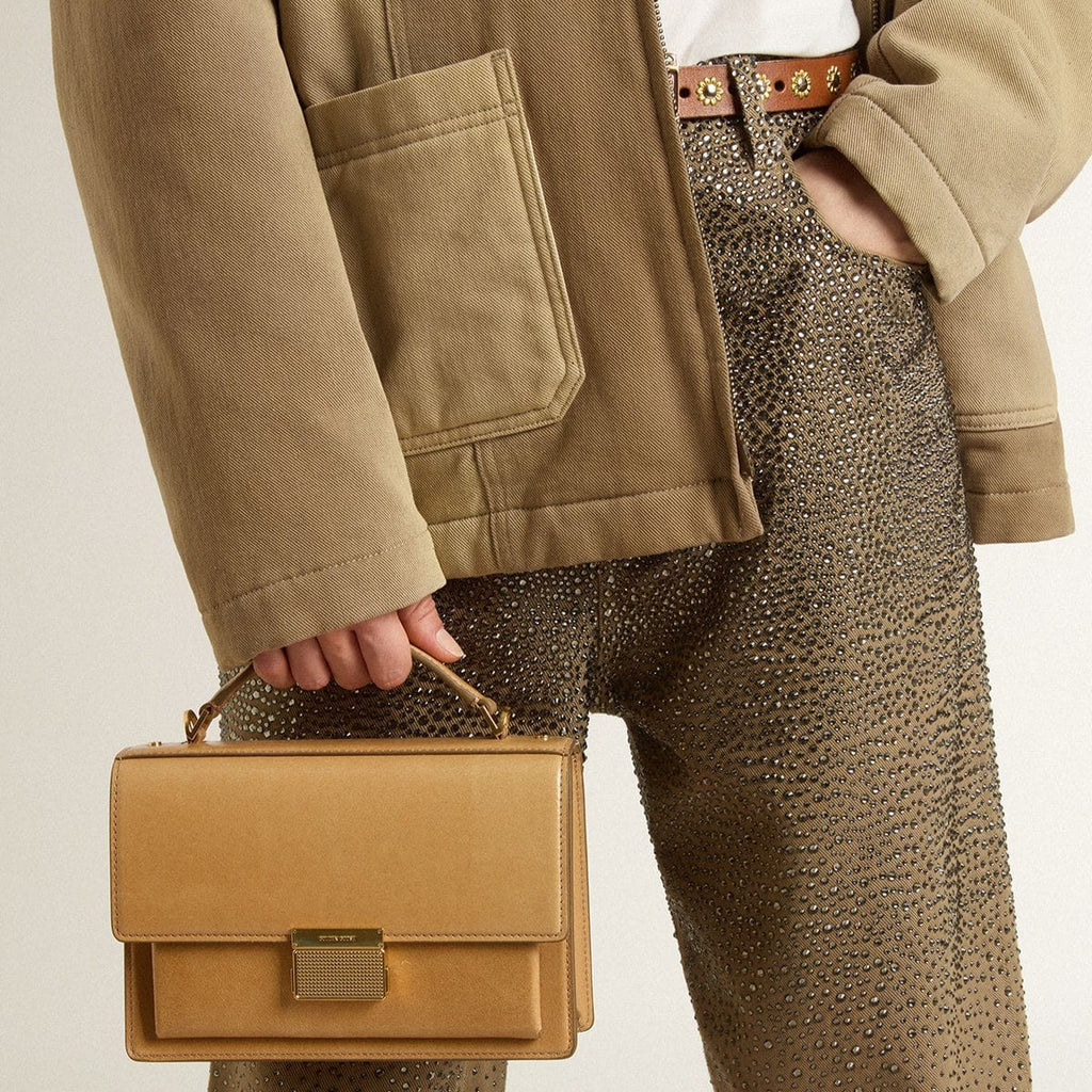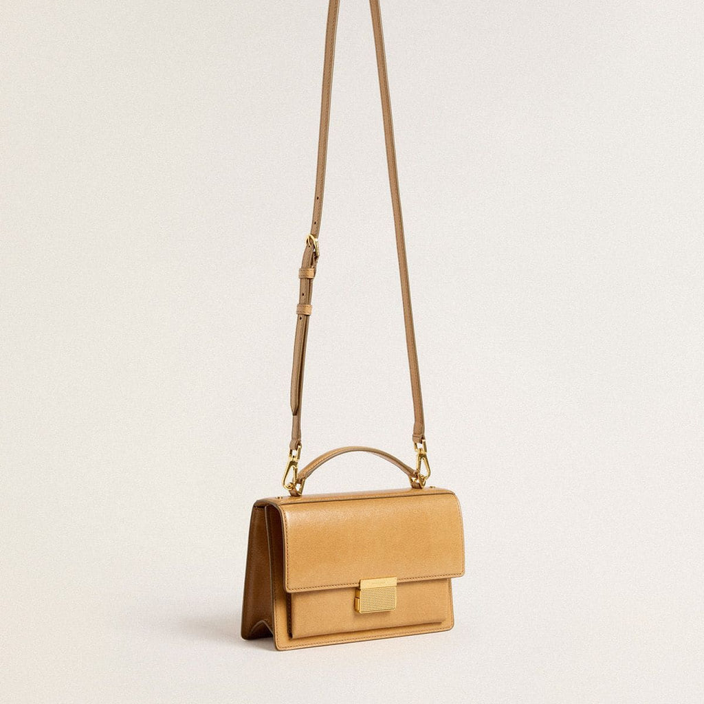 Functional yet sophisticated, our Venezia bag is a statement of Venetian elegance, inviting you to carry a piece of its soul wherever you go. In ochre yellow embossed leather, this style features a gold buckle fastening and gold-colored metal details. The double inside pocket adds the finishing touch.