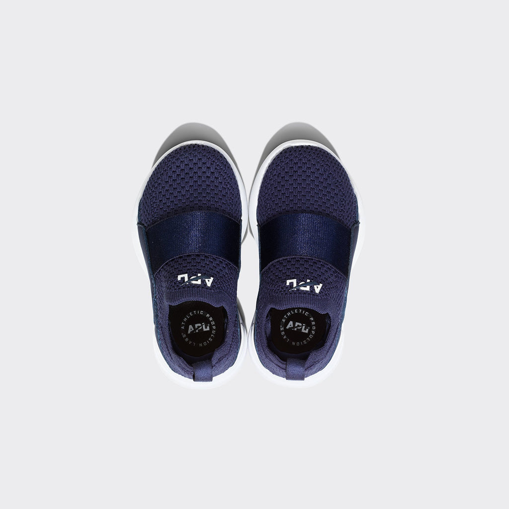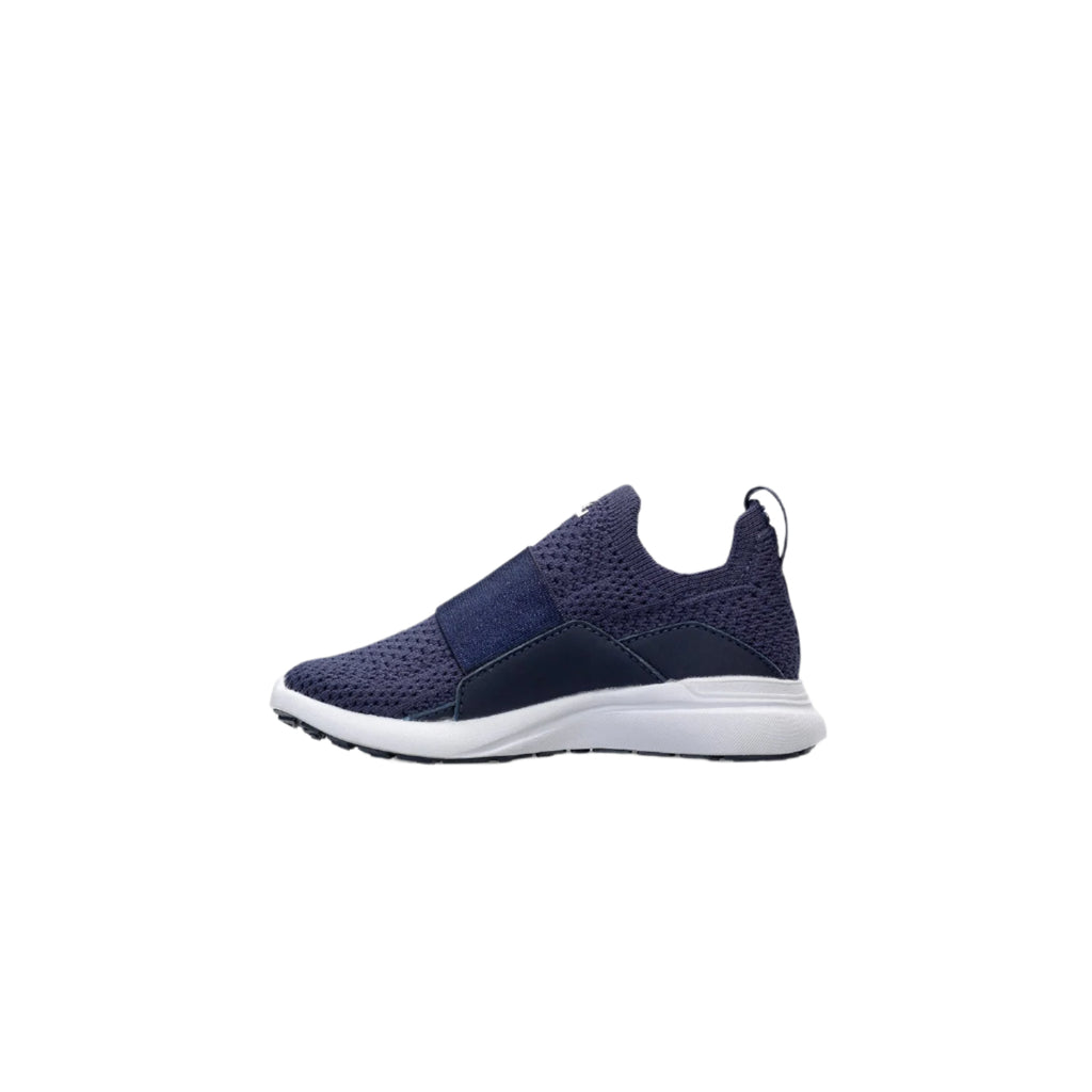 Perfect For Your Mini Me. We chose our best-selling TechLoom Bliss running shoe as the first ever APL sneaker to be adapted and developed for younger aspiring athletes and kids on the go. The Athletic Propulsion Labs (APL) Youth TechLoom Bliss machine washable running shoe travels with kids through all aspects of their lives. The Bliss features an easy on and off slip on design and custom milled elastic strap that stretches for comfort but is snug enough to keep their feet secure. Perfect for the playground to P.E. class, the TechLoom Bliss uses APL’s proprietary Propelium® technology, designed to maximize energy generation and provide superior comfort while maintaining structural integrity to keep their growing feet cushioned every time they hit the ground running.  Upgraded, full rubber outsole allows your little ones to play all day with increased traction and durability. As a special touch, each pair of Bliss shoes arrives in a new APL custom “color me” shoe box designed as a special gift just for kids. 4.8 oz.