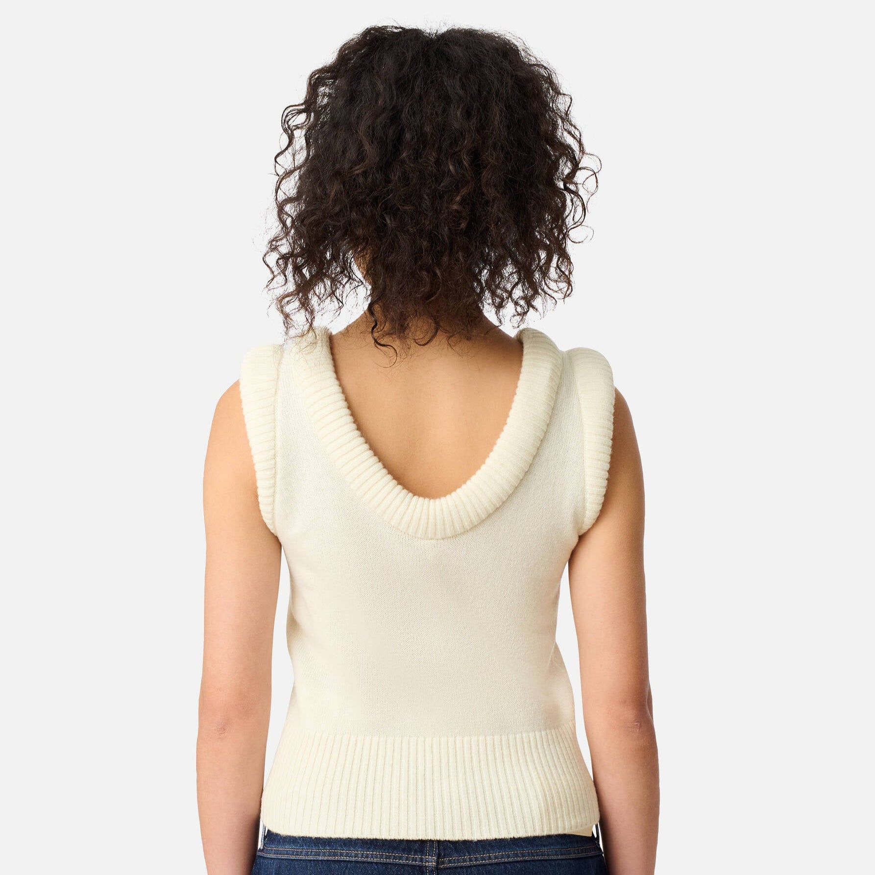 Knitted from a soft wool-blend, the Marla vest is padded around the neckline and armholes to create subtle volume in the slim silhouette. Looped hand-stitching and embroidery finish this piece.