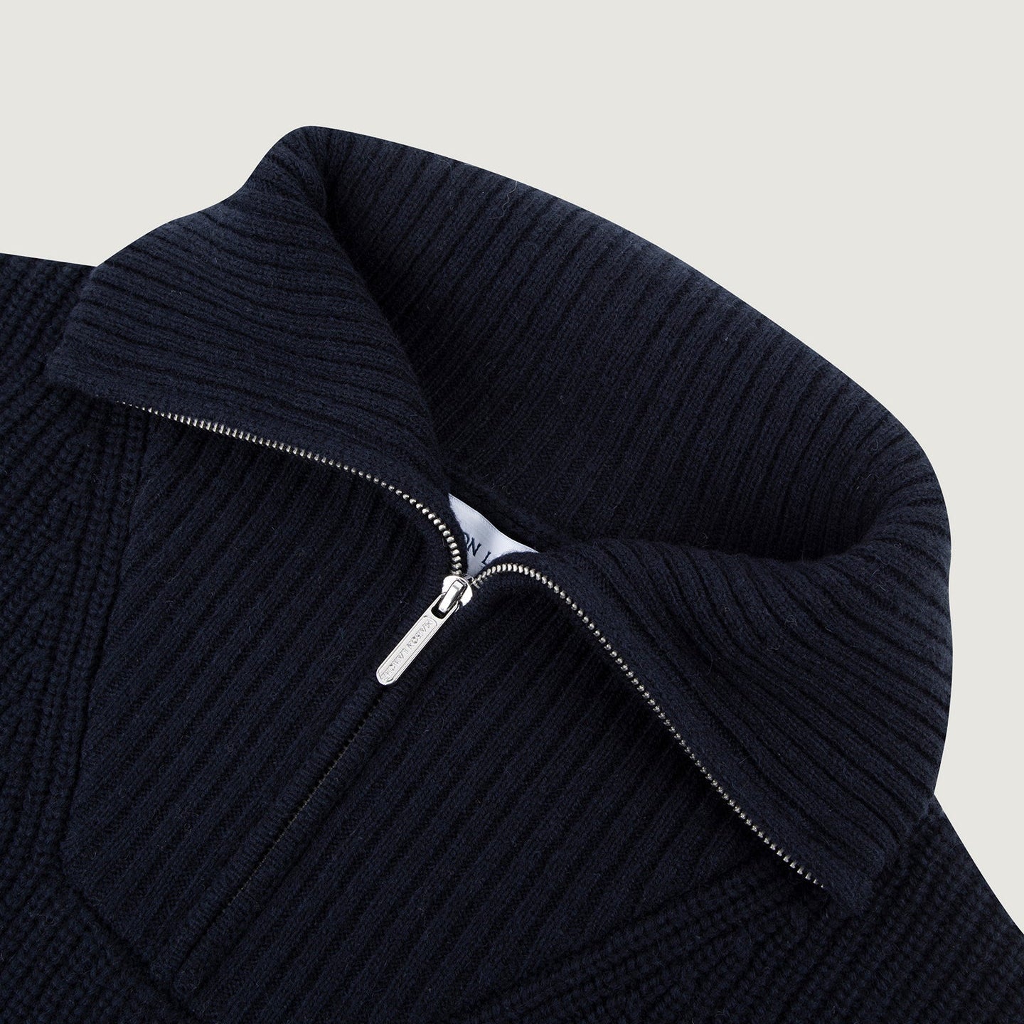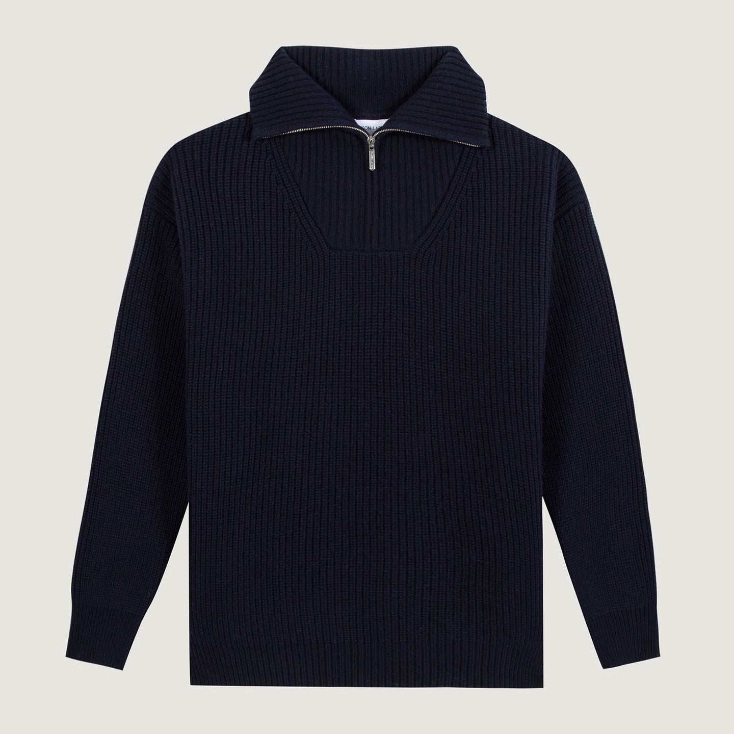 Our Privat sweater has a comfortable cut, a zipped trucker collar and ribbed bottom sleeves and body.COMPOSITION- 100% wool- Oekotex certifiedTRACEABILITY- Weaving: China- Dyeing | Printing: China- Made in China