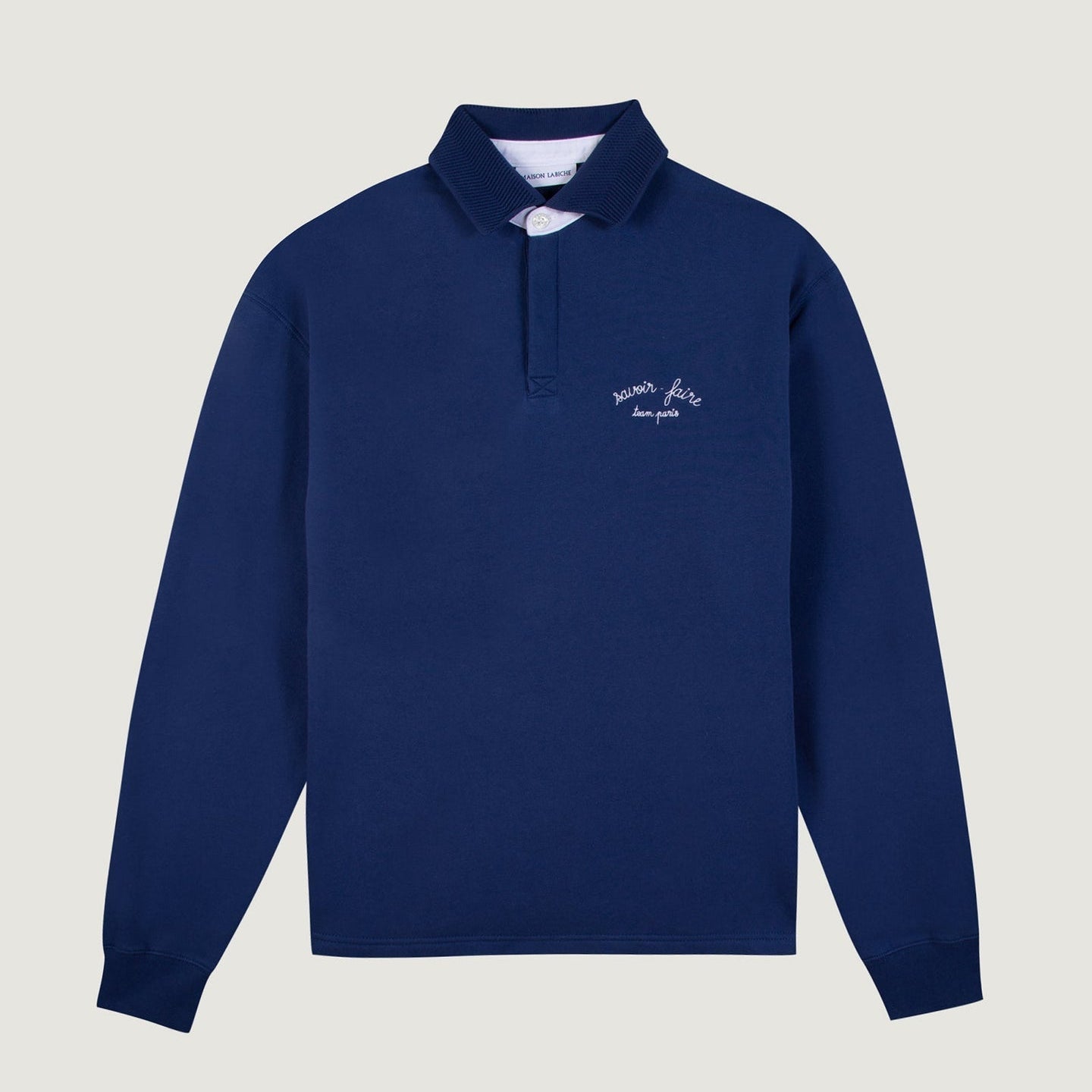 Our St Fargeau polo for men features a loose fit, cotton poplin shirt collar, side slits and double-needle embroidery on the bottom sleeves and body. Its embroidery is our slogan for know-how.