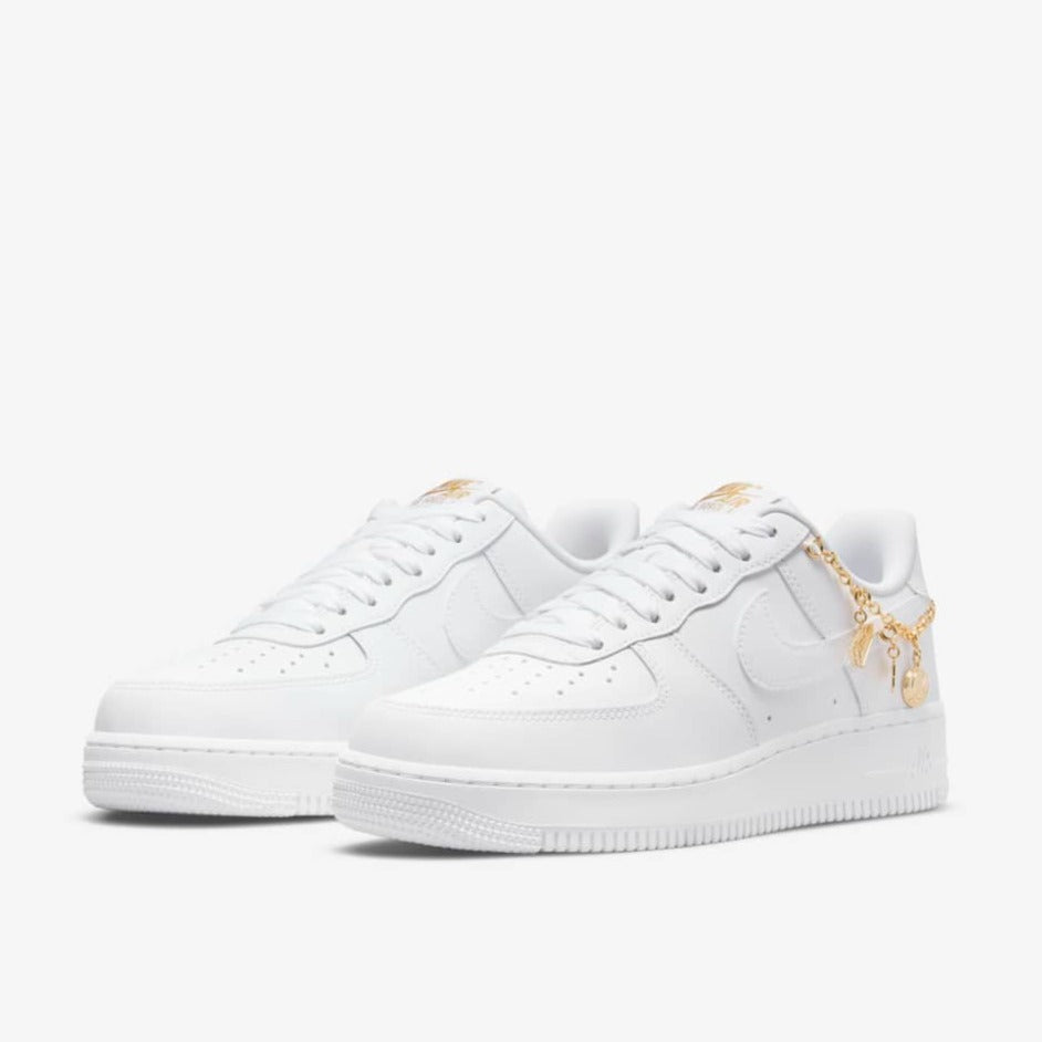 The radiance lives on in the Air Force 1 "White Pendant", the basketball classic that puts a fresh spin on what you know best: stitched overlays, bold details and the perfect amount of hoops style to make heads turn. The removable gold chain with pendants lets you customise your look with flair.