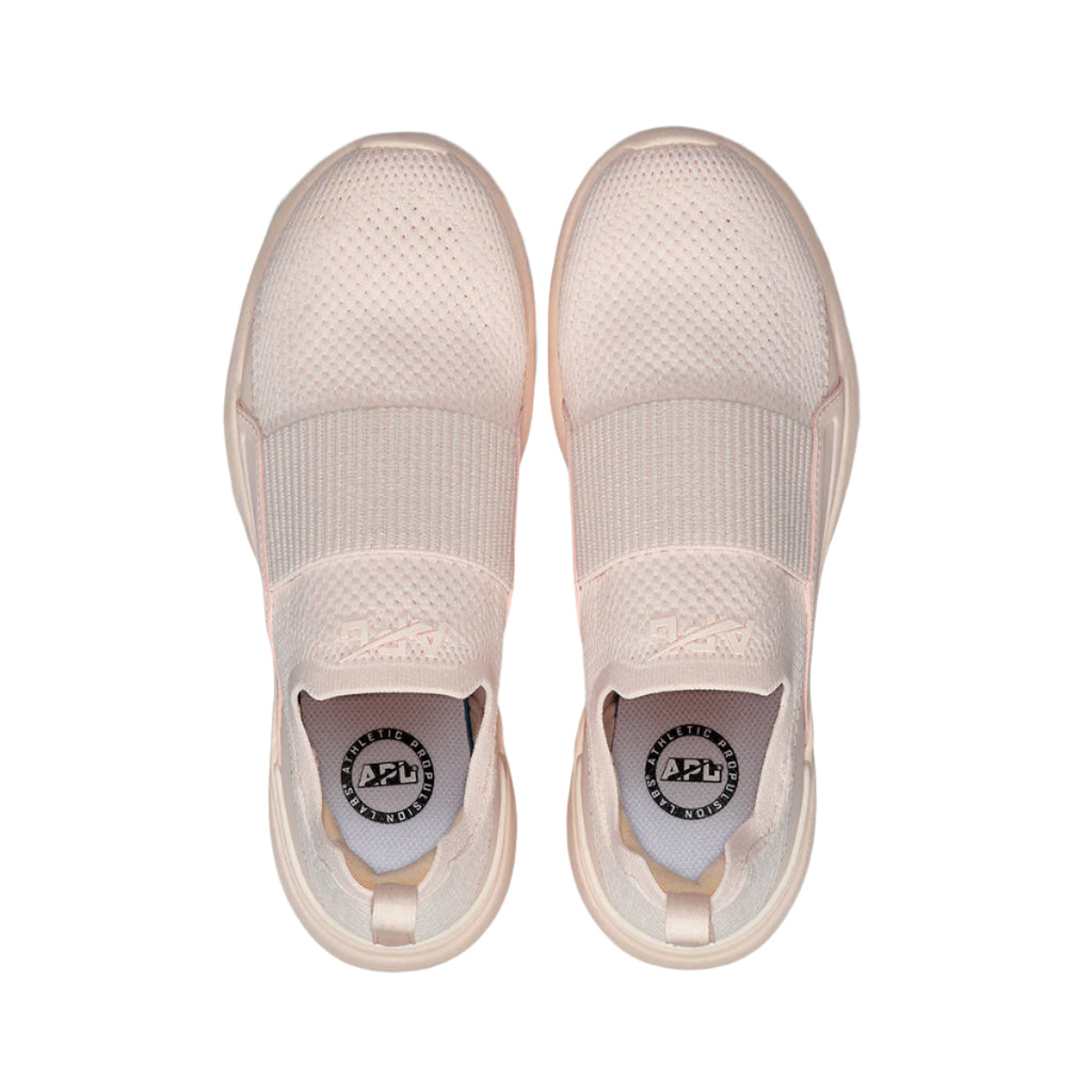 The ultimate intersection of luxury and performance, the APL TechLoom Bliss running shoe travels with you through all aspects of your life. Over two years in the making and our lightest running shoe ever at 6.8 oz., the TechLoom Bliss running shoe features a stunning slip on design and custom elastic strap that allows for quick ingress and egress providing the ultimate comfort and a seamless fit.